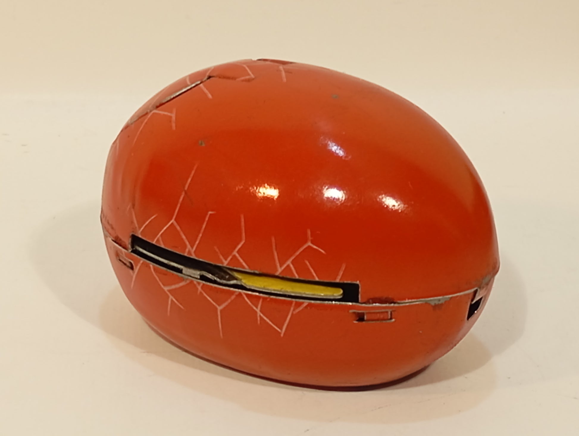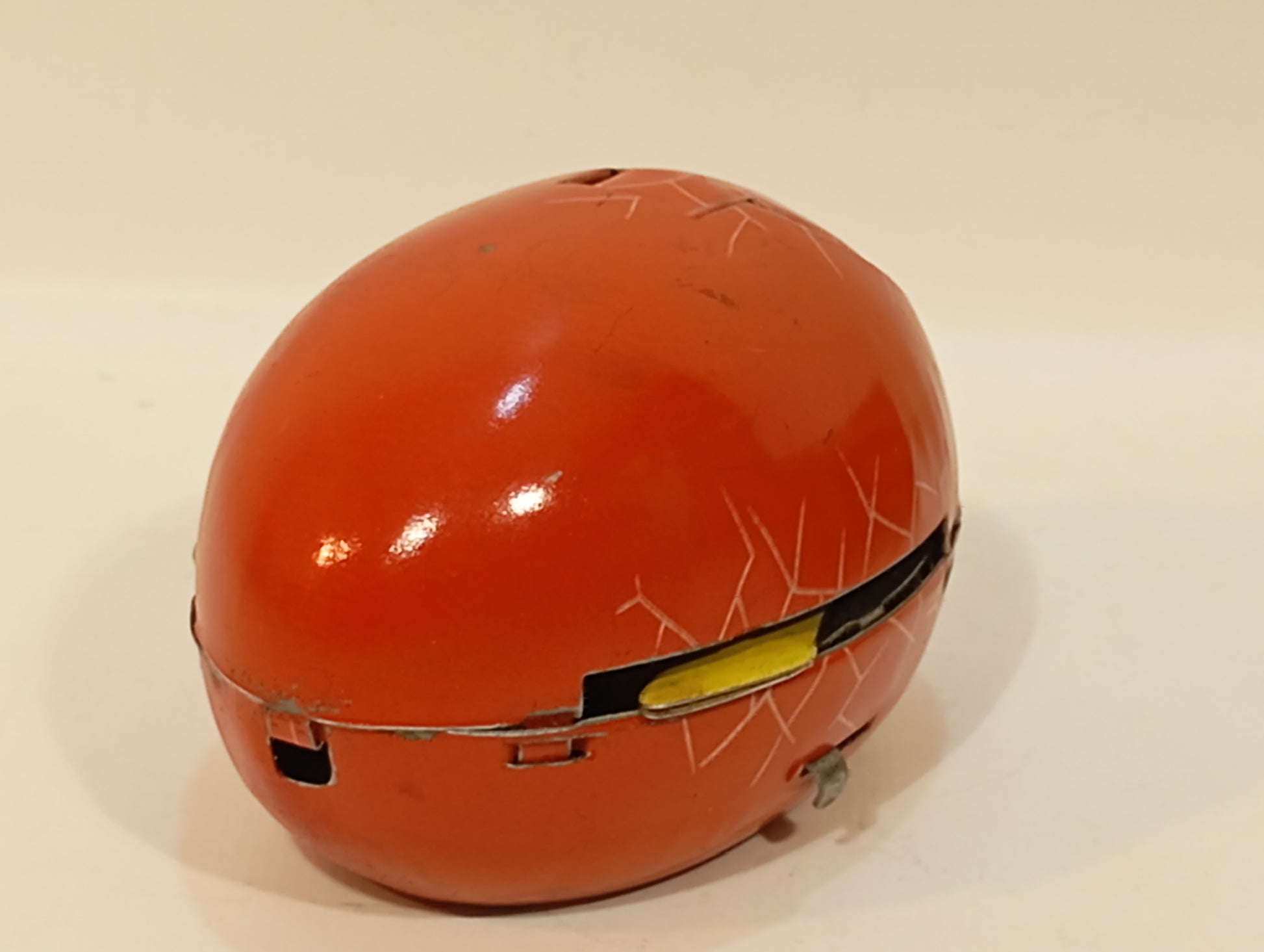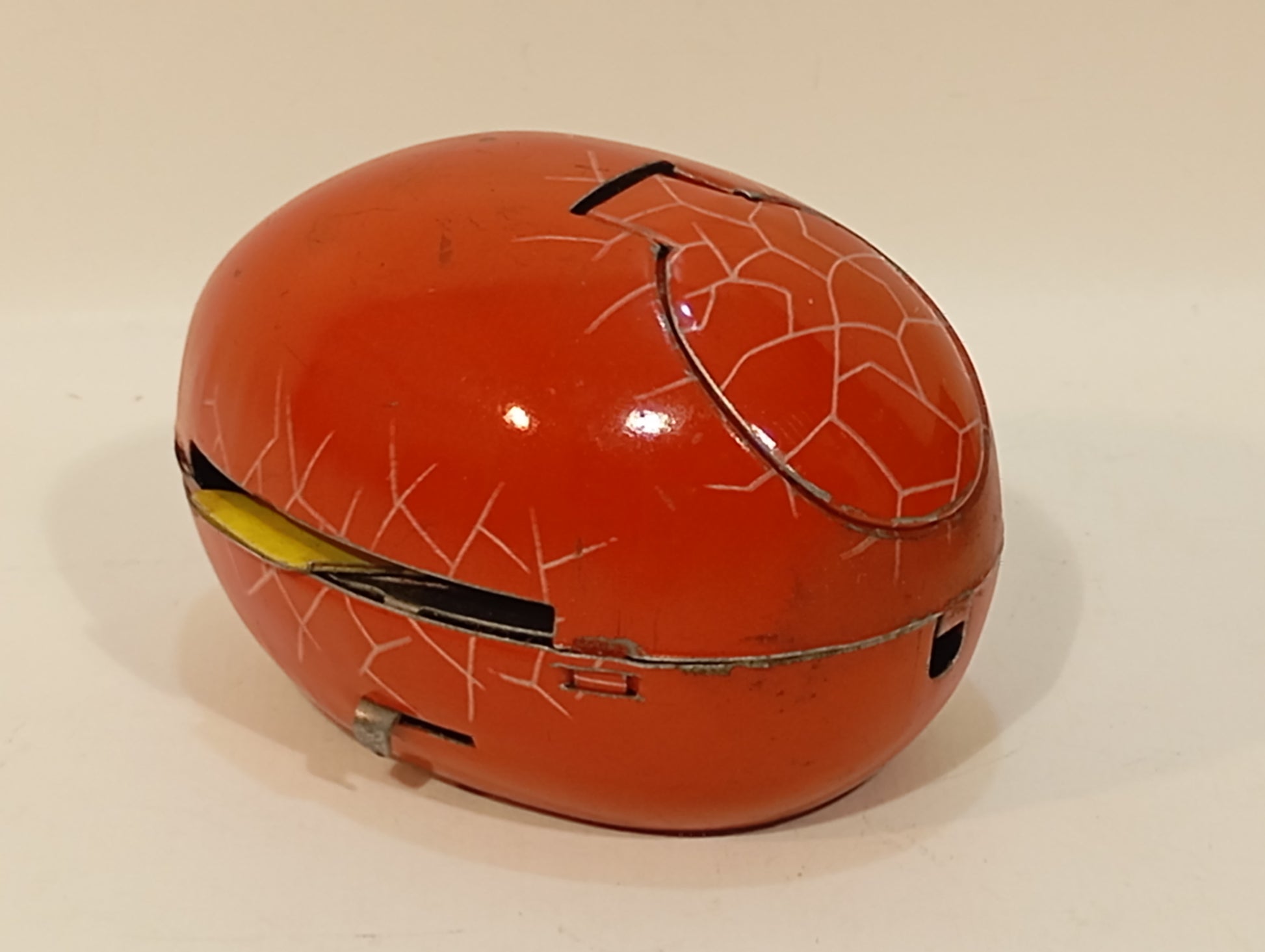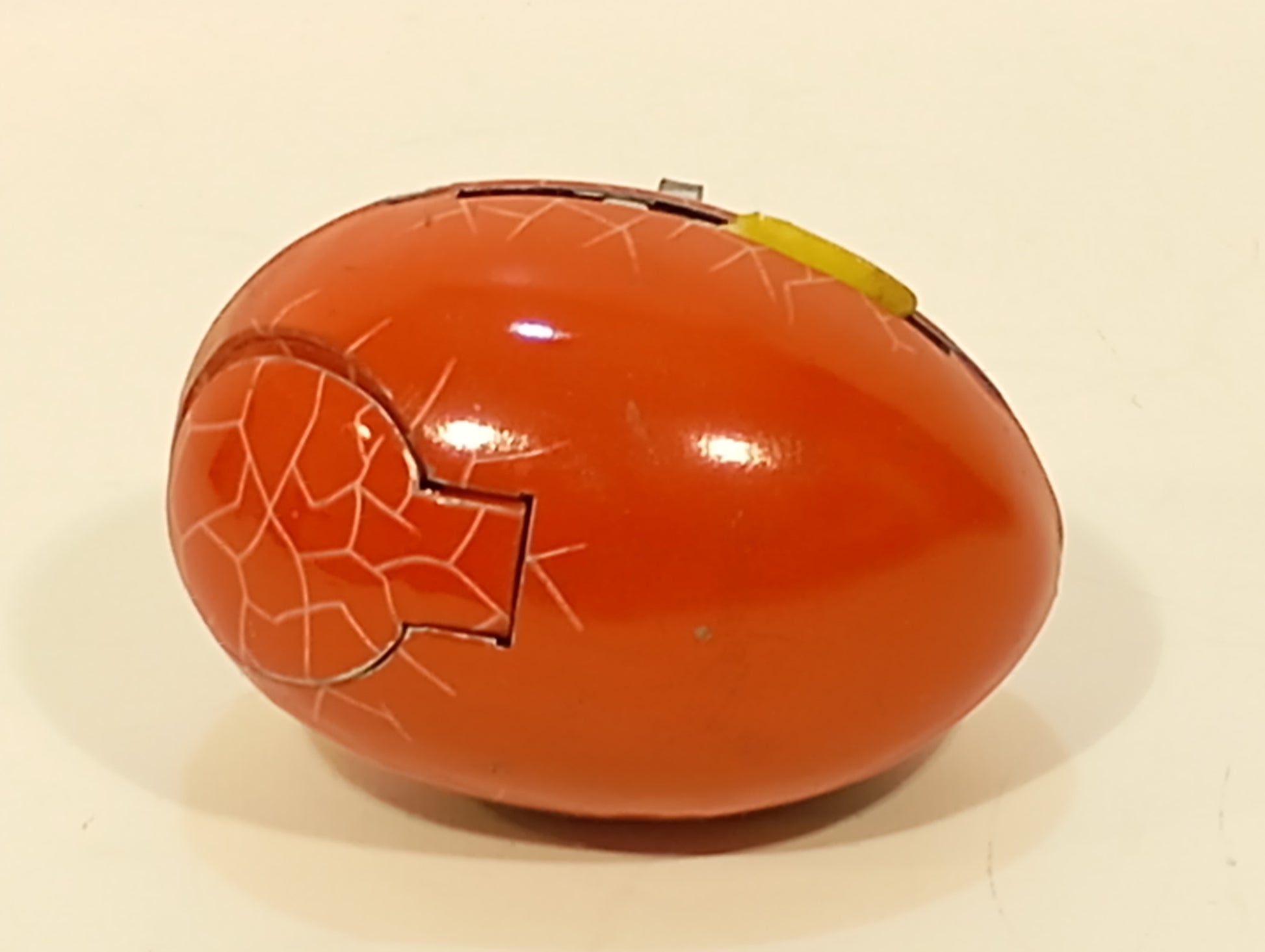 Das schlüpfende Kücken in rot, eine absolute Seltenheit, Originalkarton mit minimalen Alters- und Gebrauchsspuren, teilweise minimal mit Tesafilm verstärkt, Uhrwerk funktioniert, 60er Jahre US Zone, 8,5 cm