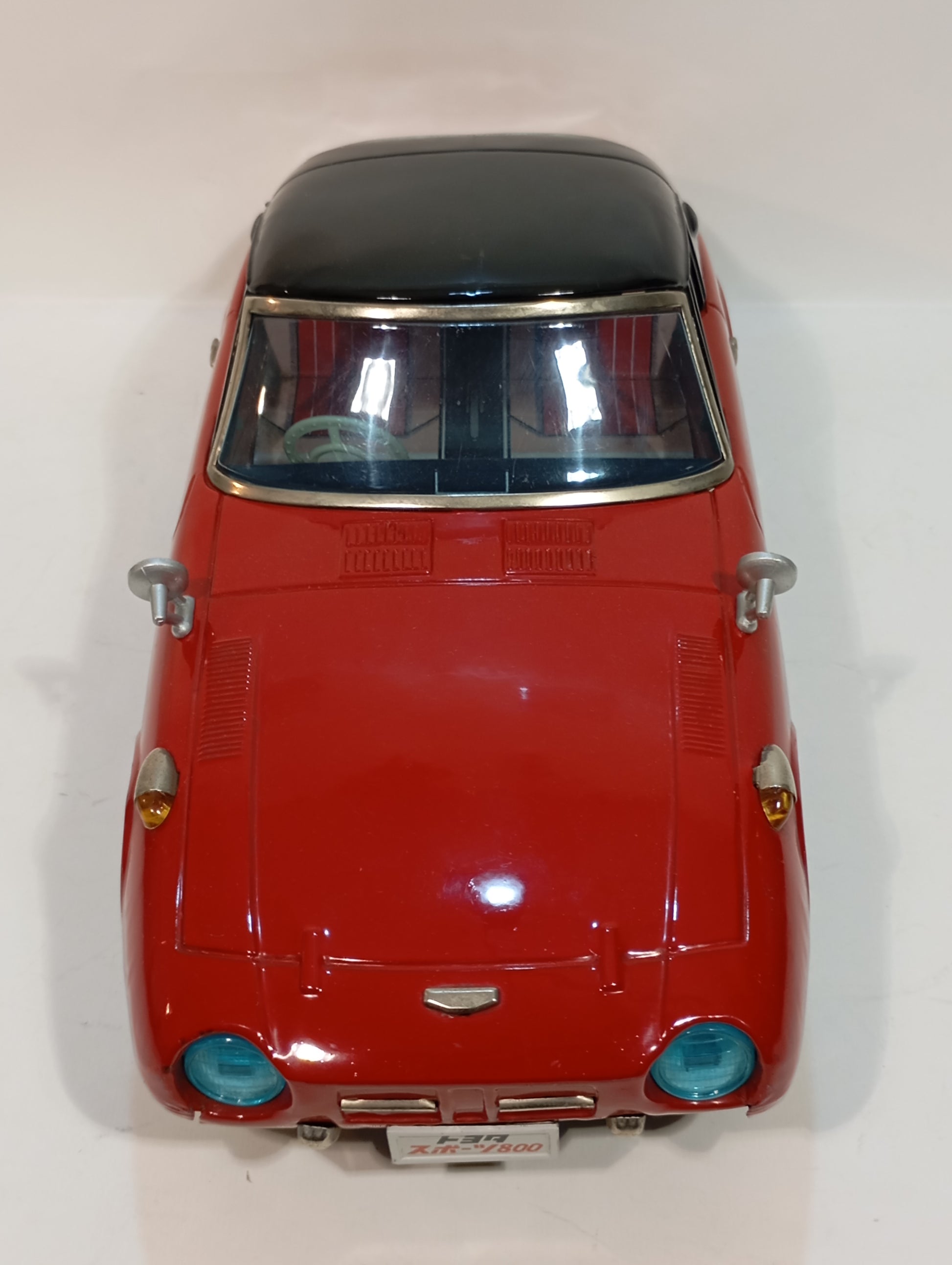Der legendäre Toyota Sports 800 aus den 1960er-Jahren – ein äußerst seltener Klassiker, der in Europa nur schwer zu finden ist. Dieses Exemplar befindet sich in hervorragendem Originalzustand: Das Schwungrad funktioniert einwandfrei, es handelt sich um die große Version mit einer Länge von 38 cm. Original, gefertigt in Japan, und lediglich minimale Spielspuren zeugen von seiner Geschichte.