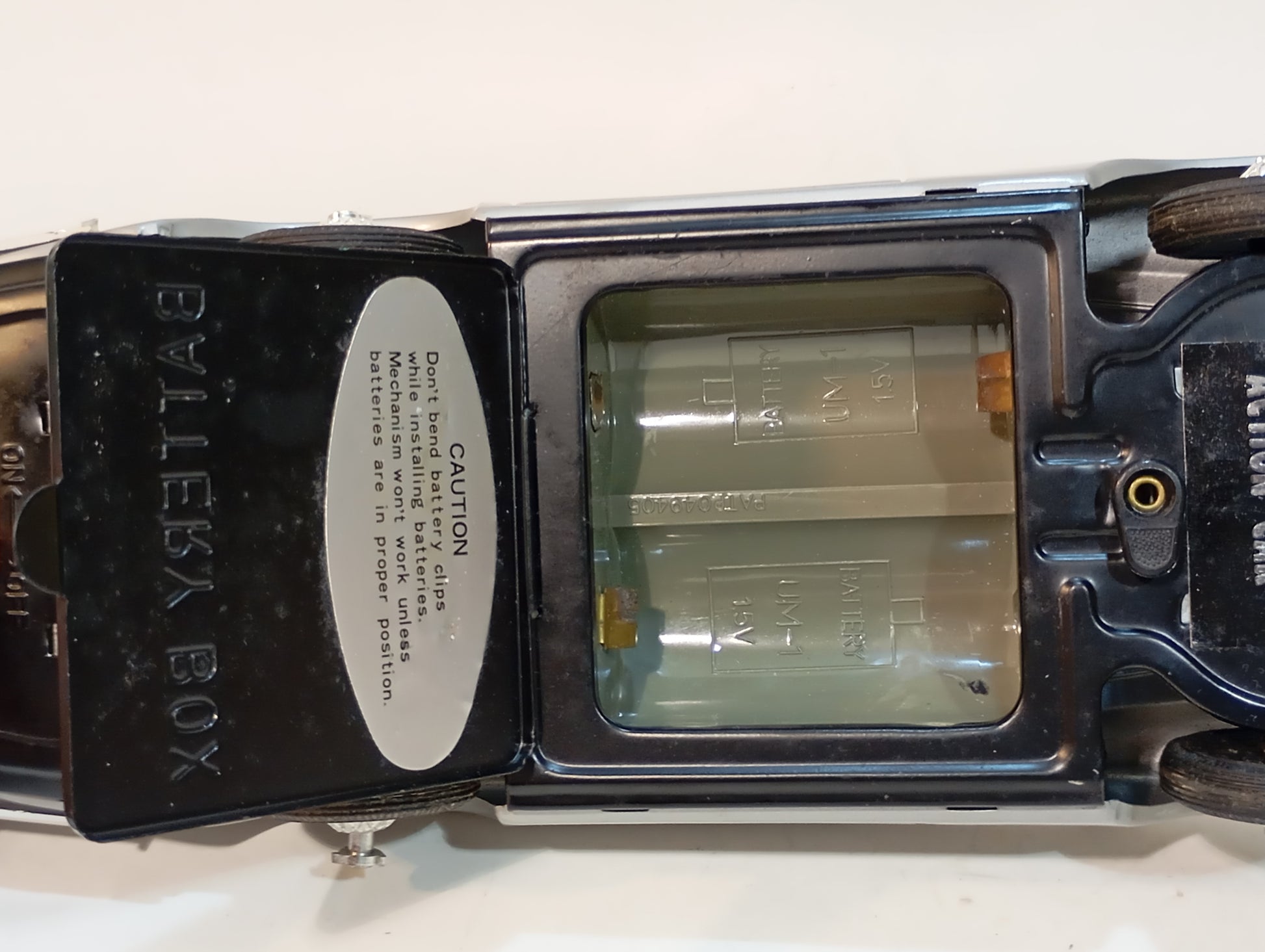 Legendäres Modell aus den frühen James-Bond-Filmen, u. a. Goldfinger. Sehr seltener Ausführungstyp ohne Mittellaufrad. Elektrischer Antrieb und Licht voll funktionsfähig. Komplett mit beiden Figuren. Perfekter Originalzustand – Lack makellos, Box ebenfalls in exzellentem Erhaltungszustand.
