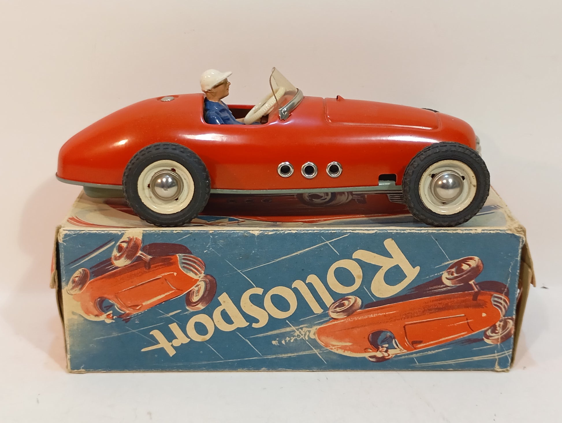 Antrieb voll funktionsfähig, hervorragender Erhaltungszustand ohne Spielspuren. Originale Scheibe vorhanden. Schachtel vollständig, mit leichten altersbedingten Gebrauchsspuren. Länge: 20 cm.