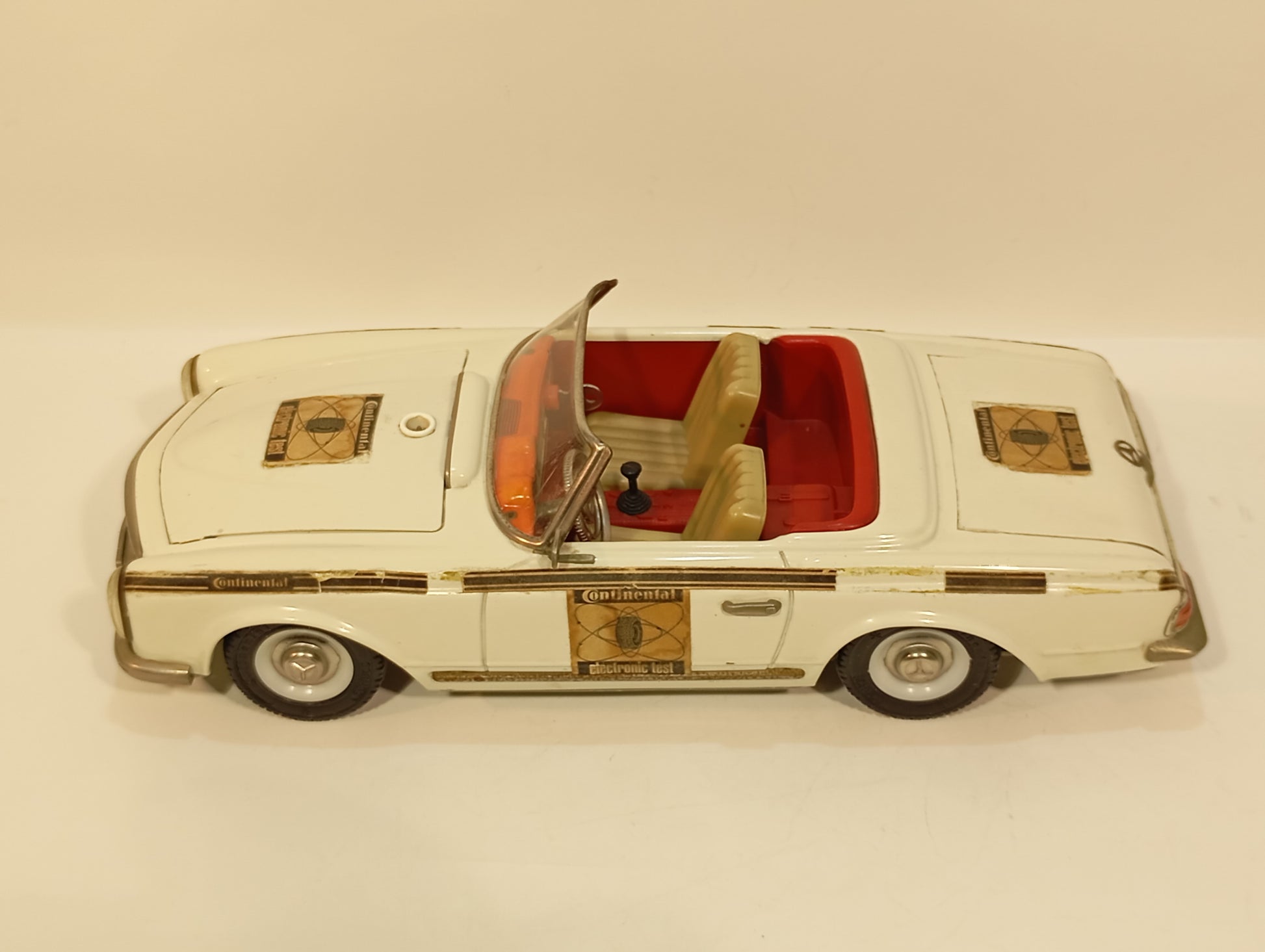 Ein äußerst seltenes Continental-Werbeauto aus den späten 1960er-Jahren, ein echtes Kuriosum und wohl ein absolutes Einzelstück. Vermutlich diente es damals als Werbeexemplar für den Messestand der Firma Continental Reifen Elektronik Test. Das Modell ist mit verschiedenen originalen Werksaufklebern versehen und voll funktionsfähig.
