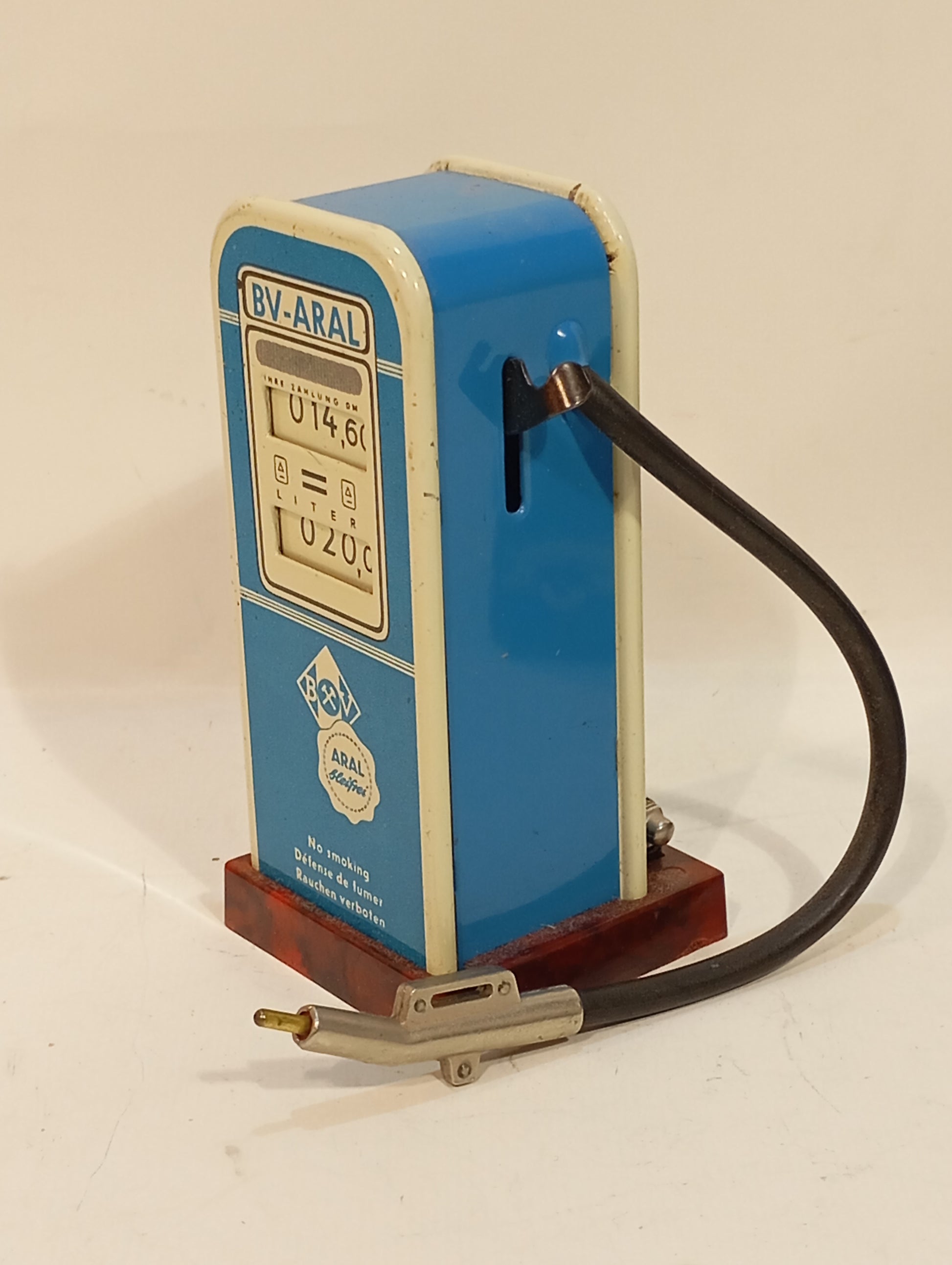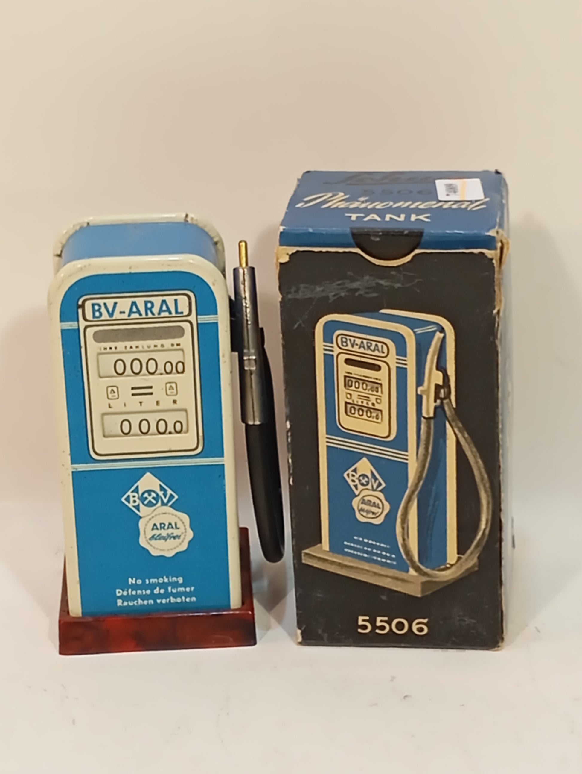 Im ausgezeichneten, nahezu neuwertigen Originalzustand. Der Originalkarton zeigt lediglich leichte Kantenabnutzung und einen minimalen Einriss. Es handelt sich um die begehrte Aral-Version aus den 1960er Jahren – ein dekoratives Stück mit 10 cm Größe.