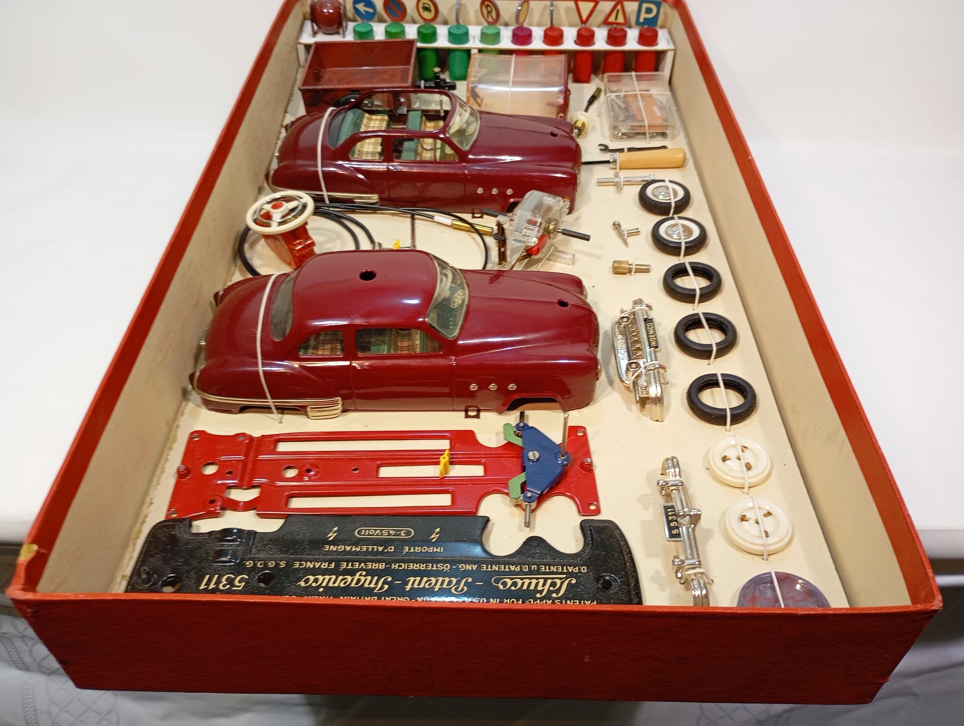 Der begehrteste Ingenico-Kasten in nahezu perfektem Originalzustand! Enthalten sind zwei Ingenico-Karossen, komplett mit sämtlichem Zubehör, sorgfältig zerlegt in der Originalschachtel. So lässt sich mühelos zwischen Limousine und Cabrio wechseln – und wieder zurück.