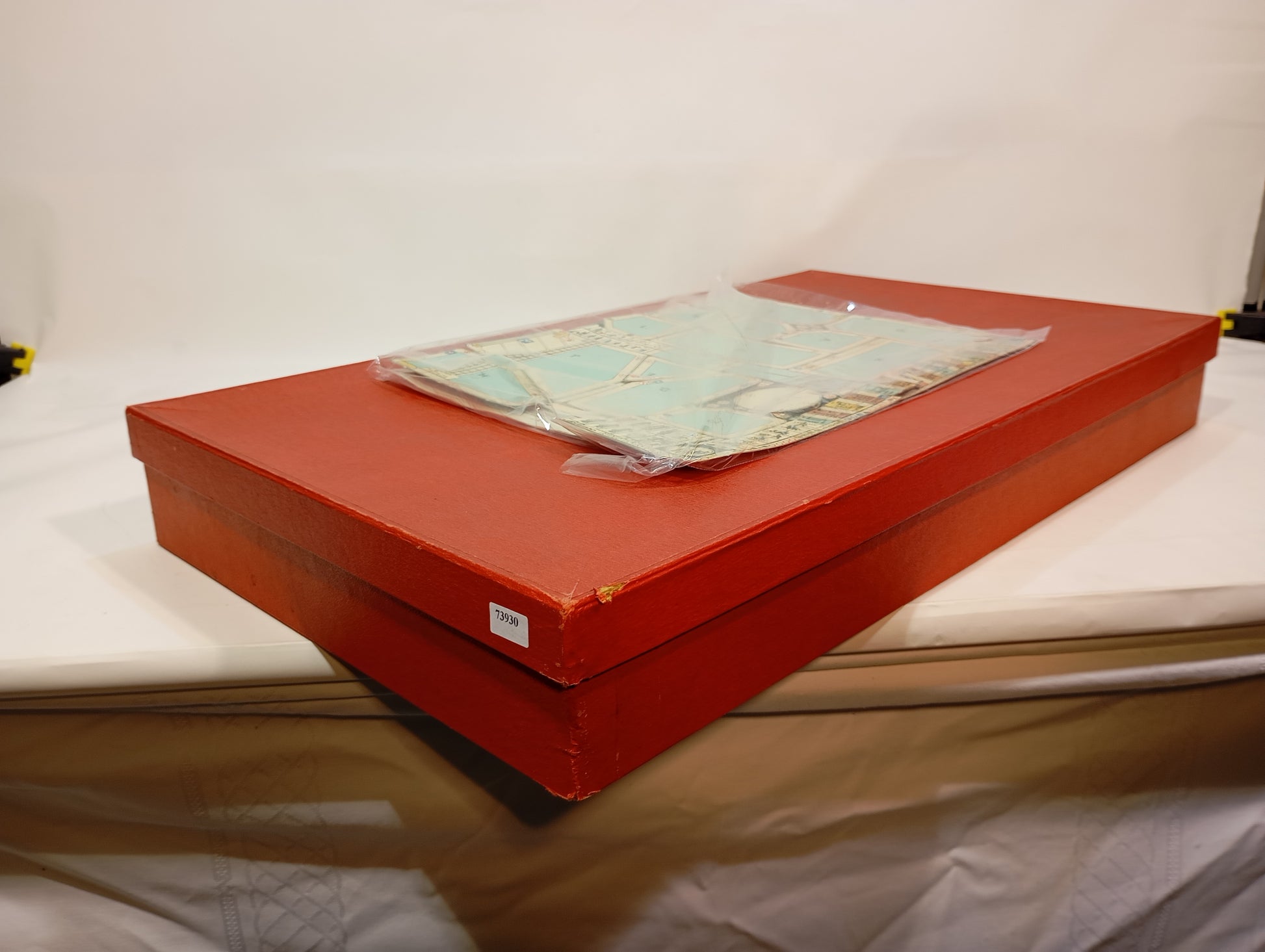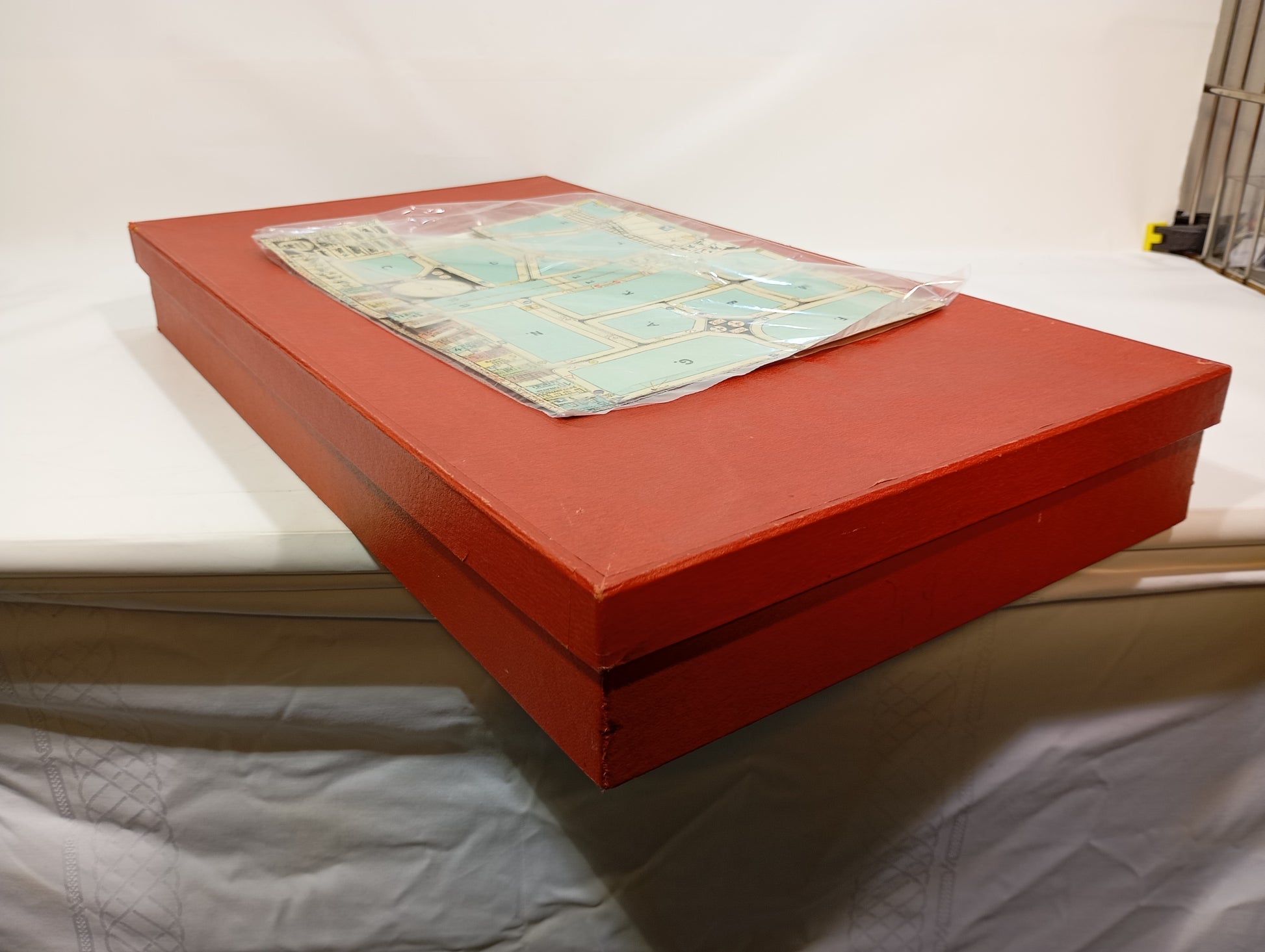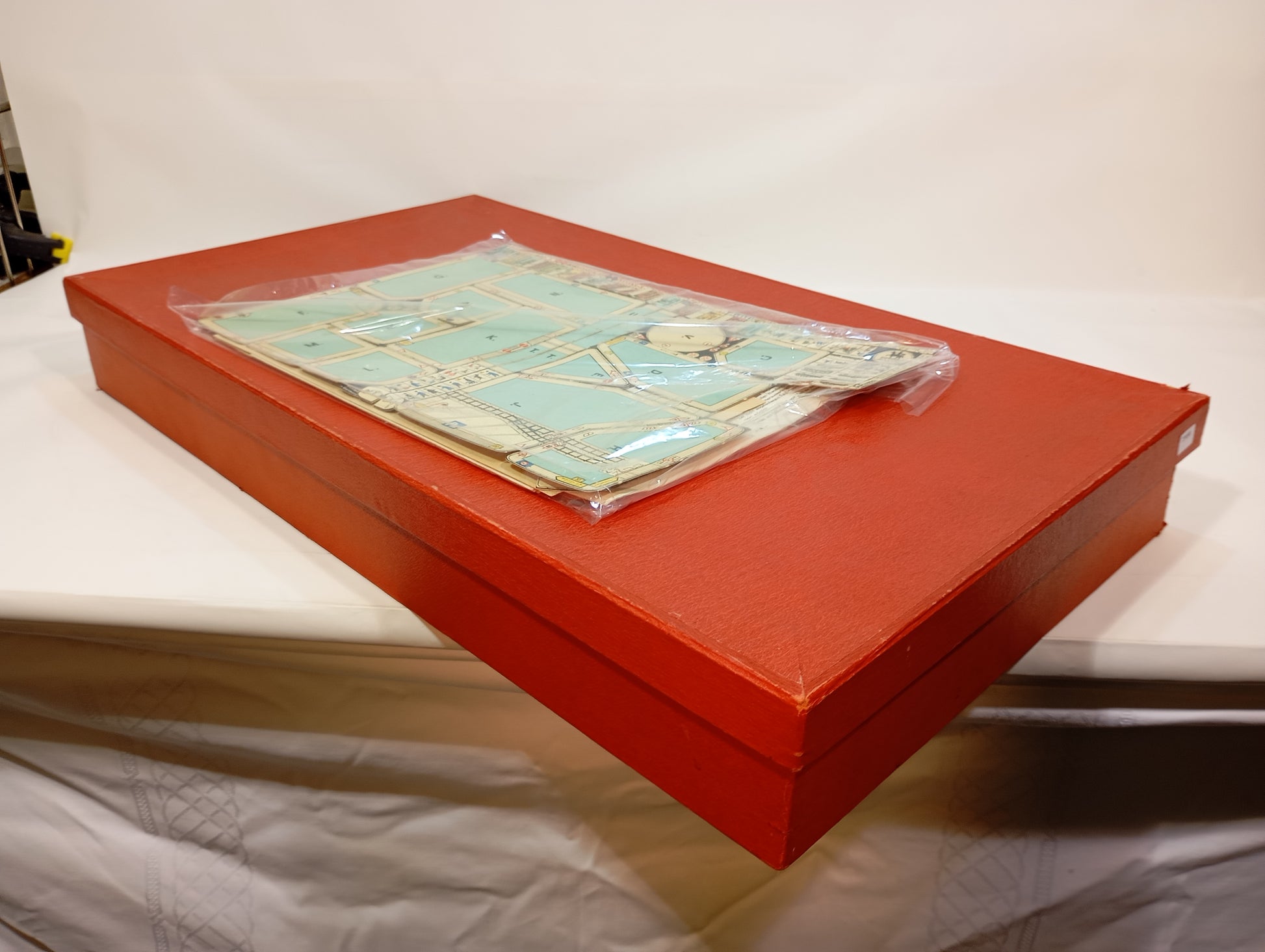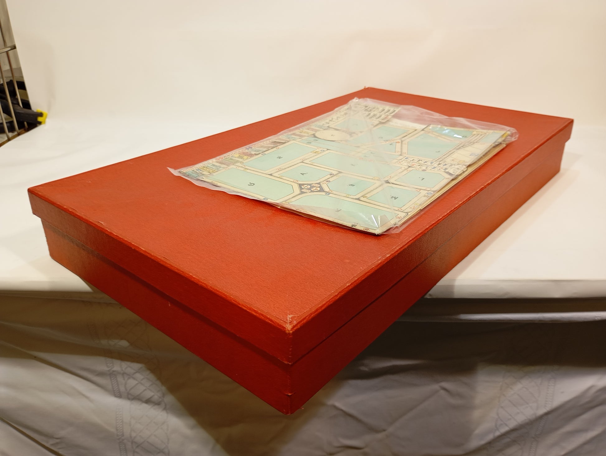 Aus den 50er-Jahren stammend, präsentiert sich dieses Sammlerstück in einem Zustand, der kaum zu übertreffen ist: lediglich minimalster Kantenabrieb an der 55 × 31 cm großen Schachtel.