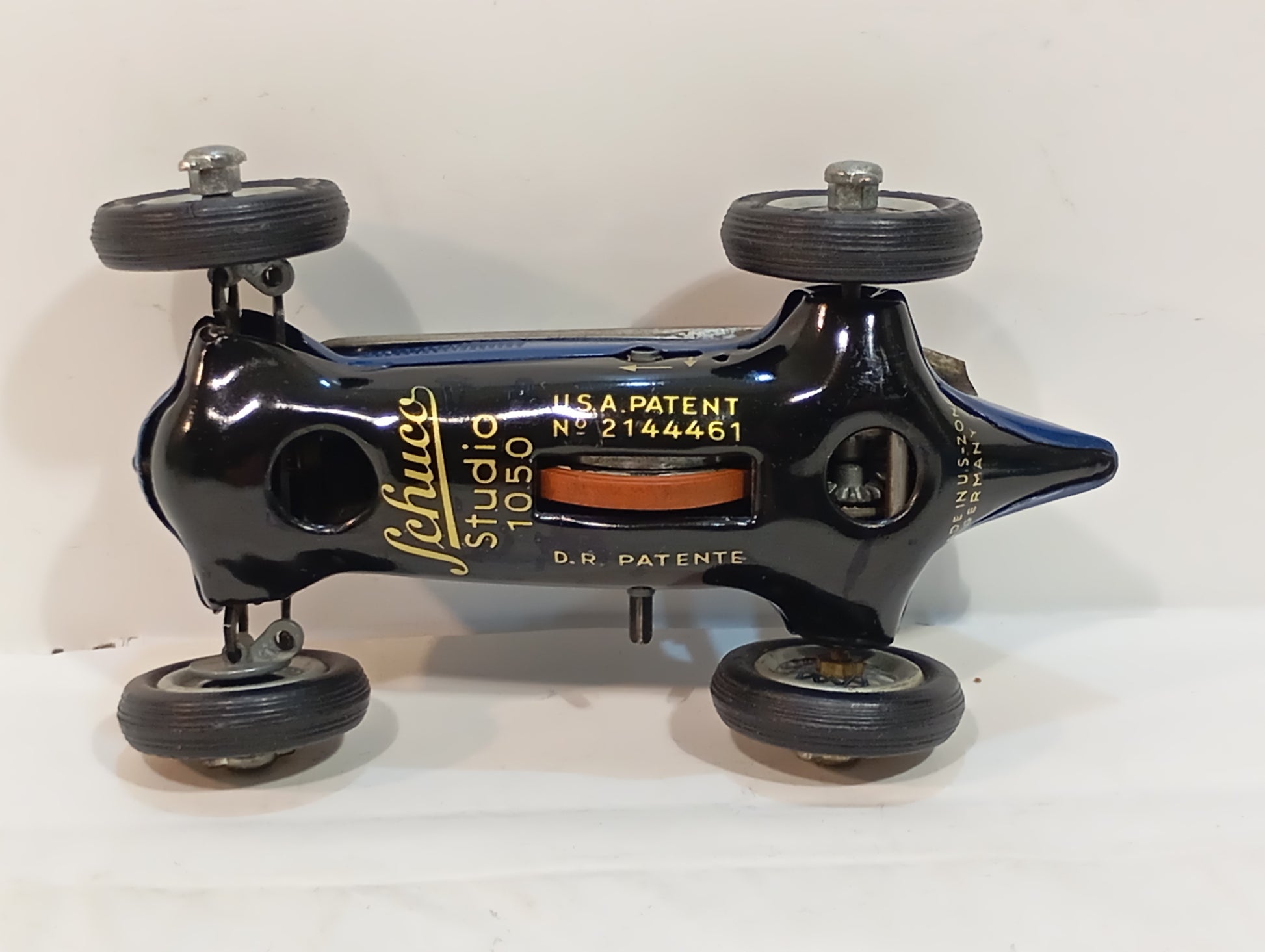 356150 auf dem Originalkarton, Zubehör wie abgebildet, dunkelblau, nahezu perfekter Zustand, inkl. Beschreibung, US Zone Version, 50er Jahre, rote Innenausstattung, mit Speichenfelgen, in allen Teilen original, Box wie Fahrzeug, 14 cm, Uhrwerk funkt.